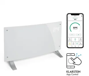 ma to dobry wpływ na środowisko i stan portfela. W trybie timera grzejnik konwekcyjny włącza się i wyłącza z dokładnością co do minuty zgodnie z dokonanymi ustawieniami. Szklany panel Bornholm Single Smart marki Klarstein jest bryzgoszczelny i dlatego nadaje się również do użytku w wilgotnych pomieszczeniach. Zakrzywiony kształt nadaje Bornholm Curved Smart wyjątkowo elegancki wygląd, a jednocześnie zapewnia lepszą dystrybucję ciepła w pomieszczeniu. Dzięki kółkom na nóżkach urządzenie można szybko i łatwo przemieszczać po mieszkaniu.