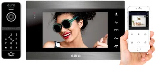 Jednorodzinny wideodomofon Eura VDP-00C5 jest idealnym rozwiązaniem dla użytkowników poszukujących urządzeń realizujących kontrolę strefy wejścia na teren posesji. Monitor urządzenia umożliwia zapis obrazów lub rejestrację filmów na karcie micro SD o maks. pojemności 32GB. Sygnał wideo w technologii AHD pozwala na pracę monitora w rozdzielczości 1024x 600 dpi zapewniając najwyższą jakość obrazu. Urządzenie posiada wbudowany moduł WiFi umożliwiający obsługę urządzenia za pomocą aplikacji Tuya dostępnej na platformy Android i iOS. Po naciśnięciu przycisku wywołania na kasecie zewnętrznej, następuje równoległe wywołanie monitora oraz smartfona wyposażonego w aplikację mobilną, dzięki której możliwe jest odbieranie połączeń, sterowanie ryglem elektromagnetycznym i automatem bramowym, wykonywanie zdjęć oraz rejestrowanie filmów w trakcie trwania połączenia. Montowana natynkowo kaseta zewnętrzna idealnie mieści się na wąskim słupku. Wykonana jest ze stopu aluminium i jest odporna na opady atmosferyczne. Kasetę wyposażono w kamerę rejestrującą obraz w rozdzielczości 960p. z obiektywem o poziomym polu widzenia 120o i pionowym 60o. Wejście na posesje może być realizowane za pomocą czytnika zbliżeniowego obsługującego breloki i karty pracującego w standardzie Mifare 13,56 MHz lub szyfratora po wpisaniu kodu PIN. Dodatkowo kaseta zewnętrzna posiada podczerwone oświetlenie nocne.