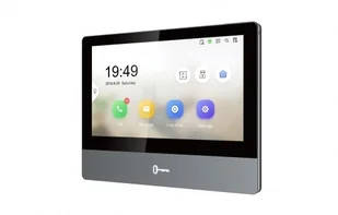 Stacja wewnętrzna, kolorowy, dotykowy ekran pojemnościowy LCD TFT 7", rozdzielczość ekranu 1024 × 600, przyciski dotykowe, umożliwia komunikację interkomową, możliwość zdalnego odblokowywania drzwi, możliwość monitorowania stacji bramowej.