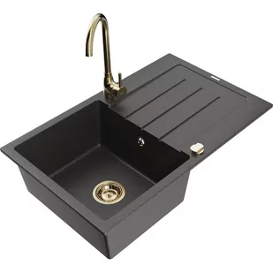Czarny nakrapiany Kolor baterii: Złoty Dane techniczne: Zlewozmywak: Rozmiar: 795x495x200 mm Głębokość komory: 200 mm Wymiary komory:
