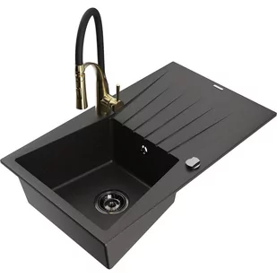 Czarny/Złoty metalik Kolor baterii: Czarny/Złoty Dane techniczne: Zlewozmywak: Rozmiar: 775x470x200 mm Głębokość komory: 180 mm Wymiary komory: