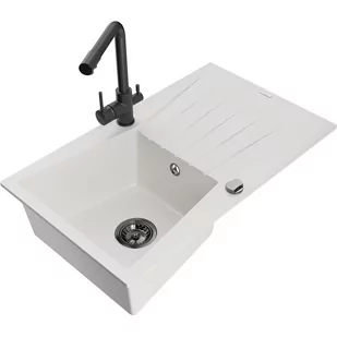 Biały Kolor baterii: Czarny Dane techniczne: Zlewozmywak: Rozmiar: 775x470x200 mm Głębokość komory: 180 mm Wymiary komory:
