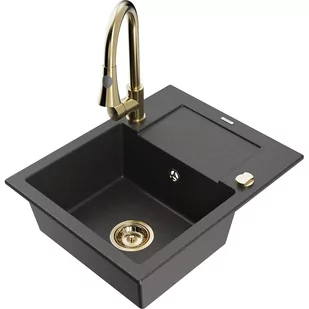 Czarny nakrapiany Kolor baterii: Złoty Dane techniczne: Zlewozmywak: Rozmiar: 576x465x174 mm Głębokość komory: 164 mm Wymiary komory: