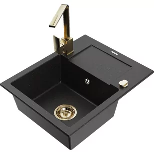 Czarny/Srebrny metalik Kolor baterii: Złoty Dane techniczne: Zlewozmywak: Rozmiar: 576x465x174 mm Głębokość komory: 164 mm Wymiary komory: