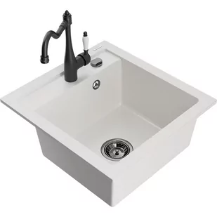 Biały Kolor baterii: Czarny Dane techniczne: Zlewozmywak: Rozmiar: 520x490x210 mm Głębokość komory: 200 mm Wymiary komory: