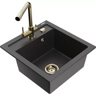 Czarny nakrapiany Kolor baterii: Złoty Dane techniczne: Zlewozmywak: Rozmiar: 520x490x210 mm Głębokość komory: 200 mm Wymiary komory: