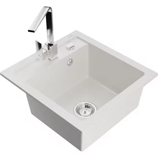 Biały Kolor baterii: Chrom Dane techniczne: Zlewozmywak: Rozmiar: 520x490x210 mm Głębokość komory: 200 mm Wymiary komory: