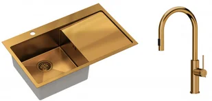 Zestaw zawiera zlewozmywak stalowy RUSSEL 111 MIEDZIANY + bateria kuchenna JENNIFER Q LINE SLIM + syfon save space z odpływem 3,5"