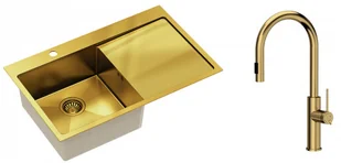 Zestaw zawiera zlewozmywak stalowy RUSSEL 111 ZŁOTY + bateria kuchenna JENNIFER Q LINE SLIM + syfon save space z odpływem 3,5"