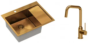 Zestaw zawiera zlewozmywak stalowy RUSSEL 116 MIEDZIANY + bateria kuchenna NATALIE Q LINE + syfon save space z odpływem 3,5"