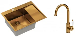 Zestaw zawiera zlewozmywak stalowy RUSSEL 116 MIEDZIANY + bateria kuchenna RACHEL Q LINE + syfon save space z odpływem 3,5"