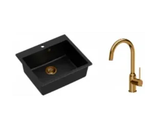 Zestaw zawiera zlewozmywak MORGAN 110 PURE CARBON GraniteQ czarny + bateria kuchenna INGRID Q LINE + syfon save space z odpływem 3,5" SteelQ PVD miedziany