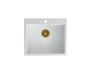 Zestaw zawiera zlewozmywak MORGAN 110 GraniteQ SNOW WHITE + bateria kuchenna INGRID Q LINE + syfon save space z odpływem 3,5" SteelQ PVD złoty