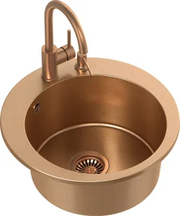 Zlewozmywak granitowy miedziany JAMES 210 + bateria NAOMI Długość zlewozmywaka: 510mm Szerokość zlewozmywaka: 510mm Głębokość zlewozmywaka: 200mm Wymiary komór: 400 x 400mm Materiał: