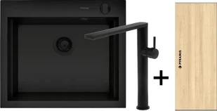 Zestaw Pyramis Zlewozmywak Siros 57x51,5 1B Black edition + Bateria Trigono Stylowy i funkcjonalny zestaw Pyramis składający się z granitowego zlewozmywaka Siros i baterii Trigono. Zlewozmywak o głębokości 515 mm oferuje różne opcje montażu, a elegancka bateria z mosiądzu dodaje mu wyrafinowania. NAJWAŻNIEJSZE PARAMETRY ZLEWOZMYWAKA Typ: Zlewozmywak jednokomorowy Kolor: Czarny Szerokość (mm):