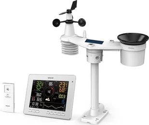 Stacja pogodowa - profesjonalna, bezprzewodowa, połączenie przez WiFi 2,4 GHz, do użytku wewnętrznego, inteligentna, z prognozą pogody, połączenie z aplikacją mobilną, pomiar ciśnienia powietrza, temperatury, promieniowania UV, wilgotności, wyświetlanie godziny, daty i faz księżyca, zasięg czujnika bezprzewodowego 150 m, możliwość podłączenia maksymalnie 3 czujników bezprzewodowych, w tym urządzenie główne, czujnik i zasilacz, montaż na ścianie i stole, wymiary 177 × 215 × 27 mm (wys. × szer. × gł.)