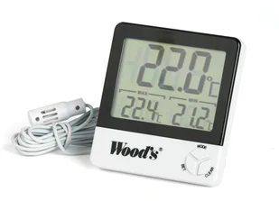 Higrometr/termometr firmy Wood's Przeznaczenie: Do kontroli wilgotności i temperatury wewnątrz pomieszczeń Dane techniczne: Zakres temperatury -50oC / +70oC Zakres wilgotności względnej 10%RH / 99%RH Dokładność pomiaru temp. +/- 1oC Dokładność pomiaru wilgot.
