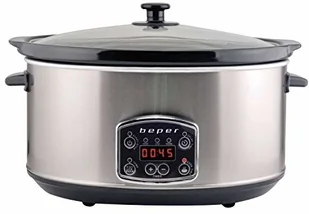Wolnowar Beper BC. 510 Pojemność: 4,5 litra280Watt| Wolnowar ze szklaną pokrywą, cyfrowy garnek do gotowaniaWolnowar Beper BC. 510 imponuje pojemnością 4,5 litra i zastosowanymi materiałami. Cyfrowy wolnowar ma obudowę ze stali nierdzewnej, dopasowaną szklaną pokrywę i ceramiczny pojemnik wewnętrzny.