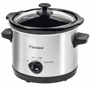 Dzięki kompaktowemu wolnowarowi ASC150 ze stali nierdzewnej marki Bestron możesz cieszyć się zdrowymi i smacznymi daniami, zachowując wszystkie witaminy, smak i składniki odżywcze w ekonomiczny sposób. Elektryczny wolnowar jest idealny do powolnego gotowania mięsa, warzyw, gulaszu, curry, potrawek, kurczaka, chili, zup itp. Wolnowar ma pojemność 1,5 litra, która wystarcza dla 1-2 osób. Zaprojektowany z 4 opcjami podgrzewania (Off/wyłączony, Low/niska temperatura, High/wysoka temperatura, Keep warm/utrzymywanie w cieple), pomoże całkowicie zaspokoić wszystkie Twoje potrzeby. Dodatkowo poręczną szklaną pokrywę i ceramiczną wewnętrzną patelnię można myć w zmywarce, co pomoże zaoszczędzić Ci mnóstwo czasu.