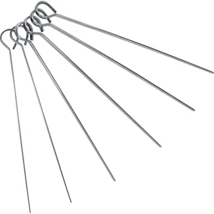 Jamestown Szpikulce do szaszłyków 6 sztuk Szpikulce do szaszłyków marki Jamestown, 6 sztuk. Stanowią niezbędny element wyposażenia przy każdym grillu. Zostały wykonane z wysokiej jakości stali nierdzewnej, co zapewnia wysoką wytrzymałość i trwałość. Są wygodne w użyciu dzięki oczkowym uchwytom. Długość: 33,5 cm.