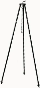 Trójnóg przeznaczony do zawieszenia kociołka emaliowanego, stalowego lub żeliwnego.