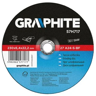 GRAPHITE Tarcza szlifierska do metalu 230 x 6,4 x 22,2 mm, 27 A24-S-BF