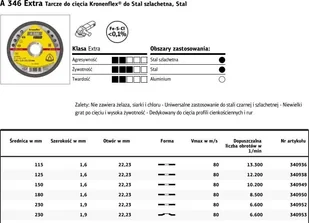 Klingspor TARCZA DO CIĘCIA METALU 230mm x 1,9mm x 22,2mm A346 K340953