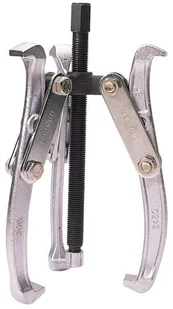 Ściągacz z trzema odwracalnymi nogami do wyciągania zewnętrznych i wewnętrznych przekładni, łożysk itp. Nogi są wykonane ze stali węglowej i posiadają możliwość zaczepienia krótszą stroną, bądź dłuższą. Jarzmo i śruba są wykonane ze stali węglowej. Śruba jest nagwintowana i chemicznie czerniona. Produkt zapakowany.