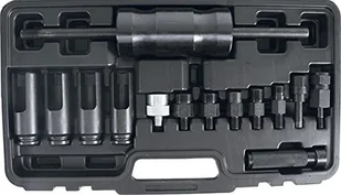 Uniwersalny zestaw do wyciągania wtryskiwaczy CDI do szybkiego i bezpiecznego demontażu wtryskiwaczy marek BOSCH - Delphi - Siemens - Denso Przegub kulowy umożliwia użycie młotka ślizgowego nawet w ograniczonych przestrzeniach Warunki przestrzenne zawiera: Młotek ślizgowy z trzonkiem i uchwytem Adapter przegubu kulowego Adapter (gwint wewnętrzny): M14 x M14 - M17 x M14 - M25 x M14 - M27 x M14 Adapter (gwint zewnętrzny): M27 x M14 - M20 x M14 Wkładki (szczelinowe, sześciokątne) do jednostki elektrycznej: 25 - 27 - 29 - 30 mm wkładka sześciokątna 10 mm z napędem 12,5 - 1/2 kompletny asortyment w wytrzymałej plastikowej walizce Artykuły do codziennego użytku w optymalnym stosunku ceny do jakości Przegub kulowy umożliwia użycie młotka przesuwnego nawet w ciasnych przestrzeniachumożliwia szybki i łatwy demontaż wtryskiwaczaMłotek ślizgowy z trzonkiem i uchwytem, 4400 gAdapter przegubu kulowegoAdapter (gwint wewnętrzny):