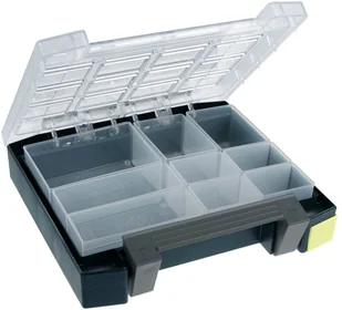 Pojemnik do przechowywania Boxxser 55 4x4 138277 marki Raaco to innowacyjne rozwiązanie, która pozwala uporządkować drobiazgi. Idealnie nadaje się do przechowywania drobnych przedmiotów, takich jak części maszyn, końcówki i akcesoria. Pudełko zawiera 9 wyjmowanych przegródek w 4 różnych rozmiarach. Dzięki wbudowanemu uchwytowi pojemnik jest łatwy i wygodny do przenoszenia. Wyposażony jest w przesuwane zamknięcie, które pozwoli Ci na bezpiecznie przechowywanie przedmiotów.