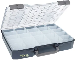 Uniwersalne i poręczne pudełko do przechowywania CarryLite firmy Raaco jest znakomite do utrzymania Twojego miejsca pracy w porządku. Jest ono idealne do przechowywania małych przedmiotów, takich jak części urządzeń, narzędzia i akcesoria. Pudełko jest podzielone na 25 przegródek tej samej wielkości. Dzięki przezroczystej pokrywie będziesz mógł z łatwością znaleźć potrzebną część w mgnieniu oka. Jest ono wyposażone w przesuwne zamknięcia po to, żeby wszystkie drobne elementy zostały na swoim miejscu.