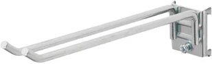 Wytrzymałe haki narzędziowe. Przeznaczone do naszych paneli narzędziowych. Proste, podwójne haki o wielu zastosowaniach. Do powieszenia kabli, rolek taśmy, narzędzi z otworami w trzonku, prawie wszystkiego, co można zawiesić. Łatwe i szybkie mocowanie do perforacji na powierzchni panela narzędziowego.