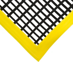 Dwie wersje o różnych wielkościach otworów: standard (22 mm x 22 mm), heavy (22 mm x 10 mm). Przeplatana struktura oraz fazowane krawędzie zwiększają bezpieczeństwo i ograniczają liczbę wypadków spowodowanych poślizgnięciem. Otwarta struktura maty skutecznie zatrzymuje luźne zanieczyszczenia oraz ułatwia odprowadzanie rozlanych cieczy pod matę. Właściwości antypoślizgowe zgodne z normą EN 13552 (kat. R10), odporność ogniowa zgodna z normą DIN 54332 (B2).