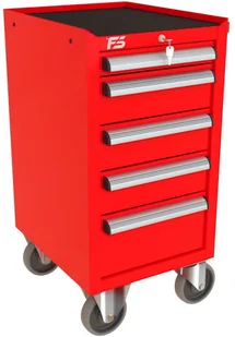 Dostawka wózka MEGA z 5 szufladami PDM-221 5 szuflad na stalowych teleskopowych prowadnicach kulkowych z pełnym wysuwem wysuw szuflad 97 % odciążenie statyczne jednej szuflady do 60 kg centralna blokada zamykająca wszystkie szuflady po przekręceniu kluczyka centralny zamek blokujący z dwoma kluczami w komplecie w systemie Master Key dno każdej szuflady wyłożone gumową matą tłumiącą ogólnego przeznaczenia o grubości 2,0 mm blat wózka wyłożony tłumiącą matą gumową benzyno olejo odporną o grubości 2,0 mm przykręcany aluminiowy, anodowany i satynowany uchwyt szuflady z zabezpieczeniem bocznych krawędzi wkładką z tworzywa konstrukcja szafki wykonana z blachy stalowej o grubości 1 mm wzmocnienia podstawy kół wykonane z blachy stalowej o grubości 2,0 mm 4 koła o średnicy 160 mm Colson Performa 2 stałe + dwa obrotowe w tym jedno z hamulcem opona koła wykonana z niebrudzącej syntetycznej gumy szarej, odpornej na smary benzyny ługi produkt wyposażony w solidny boczy uchwyt pomocny przy manewrowaniu obciążonym wózkiem możliwość pomalowania w dowolnym podstawowym kolorze palety RAL (w cenie) Wymiary użytkowe szuflad: 1 x szuflada niska 70 wysokość czoła szuflady 66 mm wysokość wewnętrzna użytkowa 56 mm szerokość wewnętrzna użytkowa 368 mm głębokość wewnętrzna użytkowa 408 mm 3 x szuflada średnia 140 wysokość czoła szuflady 136 mm wysokość wewnętrzna użytkowa 119 mm szerokość wewnętrzna użytkowa 368 mm głębokość wewnętrzna użytkowa 408 mm 1 x szuflada wysoka 210 wysokość czoła szuflady 206 mm wysokość wewnętrzna użytkowa 197 mm szerokość wewnętrzna użytkowa 368 mm głębokość wewnętrzna użytkowa 408 mm dokładne wymiary w galerii zdjęć Waga dostawki 64,5 kg Wyposażenie opcjonalne (dodatkowo płatne): blat wózka wykonany ze sklejki o gr. 40 mm przestawne podziałki / p