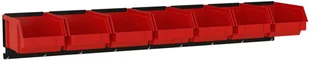 Zawieszka ZW-P3-7 - przystosowana do zawieszenia 7 pojemników P3 o wymiarach: szerokość 144 mm, głębokość 224 mm, wysokość 108 mm - zawieszka z zaczepami do mocowania na perforacji tablicy narzędziowej, lub płyty perforowanej - rozstaw zaczepów do kratownicy 32 mm - wielkość oczka do perforacji 10 mm - szerokość zawieszki 1052 mm - wysokość zawieszki 155 mm - głębokość zawieszki 30 mm - zabezpieczenie przed wysunięciem z perforacji - klips pozycjonujący w zestawie - wykonanie z blachy stalowej o grubości 1,0 mm - malowana farbą proszkową w kolorze czarnym - zawieszka sprzedawana bez pojemników (pojemniki można nabyć oddzielnie)