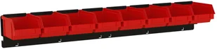 Zawieszka ZW-P1-8 - przystosowana do zawieszenia 8 pojemników P1 o wymiarach: szerokość 77 mm, głębokość 119 mm, wysokość 56 mm - zawieszka z zaczepami do mocowania na perforacji tablicy narzędziowej, lub płyty perforowanej - rozstaw zaczepów do kratownicy 32 mm - wielkość oczka do perforacji 10 mm - szerokość zawieszki 630,5 mm - wysokość zawieszki 95 mm - głębokość zawieszki 20 mm - zabezpieczenie przed wysunięciem z perforacji - klips pozycjonujący w zestawie - wykonanie z blachy stalowej o grubości 1,0 mm - malowana farbą proszkową w kolorze czarnym - zawieszka sprzedawana bez pojemników (pojemniki można nabyć oddzielnie)