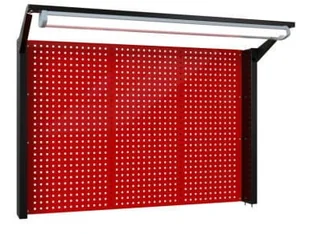 N-4-10-04 Tablica na narzędzia 920mm x 1350mm x 135mm z samą kratownicą bez oświetlenia - Płyta perforowana umożliwiająca rozmieszczenie narzędzi za pomocą zawieszek - Wymiary: wys. 920 mm x szer. 1350 mm x głęb. 135 mm - Przystosowana do zamontowania bezpośrednio na blacie stołu - Możliwość rozmieszczenia narzędzi zgodnie z własnymi potrzebami za pomocą zawieszek - Możliwość zakupu dowolnie wybranych zawieszek (patrz. w zakładce z zawieszkami) Szerokość 1350mm Głębokość 135mm Wysokość całkowita 920mm Konstrukcja Wysokiej jakości blacha stalowa gr. 1mm Powłoka malarska Malowanie proszkowe Dostępne kolory Wybierz z listy rozwijanej obok zdjęcia produktu Perforacja Oczko 10x10mm, odstęp pomiędzy oczkami 32mm.