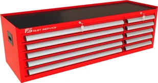 Nadstawka warsztatowa z 10 szufladami PNM-150-50 10 szuflad na stalowych teleskopowych prowadnicach kulkowych z pełnym wysuwem wysuw szuflad 97 % odciążenie statyczne jednej szuflady do 60 kg centralna blokada zamykająca wszystkie szuflady po przekręceniu kluczyka centralny zamek blokujący z dwoma kluczami w komplecie w systemie Master Key blokada zapobiegająca wysunięciu więcej niż jednej szuflady dno każdej szuflady wyłożone gumową matą tłumiącą ogólnego przeznaczenia o grubości 2,0 mm blat nadstawki wyłożony tłumiącą matą gumową benzyno olejo odporną o grubości 2,0 mm przykręcany aluminiowy, anodowany i satynowany uchwyt szuflady z zabezpieczeniem bocznych krawędzi wkładką z tworzywa konstrukcja nadstawki wykonana z blachy stalowej o grubości 1 mm wzmocnienia podstawy kół wykonane z blachy stalowej o grubości 2,0 mm 4 koła o średnicy 125 mm Colson Performa 2 stałe + dwa obrotowe w tym jedno z hamulcem opona koła wykonana z niebrudzącej syntetycznej gumy szarej, odpornej na smary benzyny ługi boki szafki posiadają perforację przystosowaną do zamontowania zawieszek na narzędzia produkt wyposażony w solidny boczy uchwyt pomocny przy manewrowaniu obciążonym wózkiem możliwość pomalowania w dowolnym podstawowym kolorze palety RAL (w cenie) Wymiary użytkowe szuflad: 5 x szuflada niska 70 szeroka wysokość czoła szuflady 66 mm wysokość wewnętrzna użytkowa 56 mm szerokość wewnętrzna użytkowa 966 mm głębokość wewnętrzna użytkowa 408 mm 5 x szuflada niska 70 wąska wysokość czoła szuflady 66 mm wysokość wewnętrzna użytkowa 56 mm szerokość wewnętrzna użytkowa 368 mm głębokość wewnętrzna użytkowa 408 mm dokładne wymiary w galerii zdjęć Wyposażenie opcjonalne (dodatkowo płatne): blokada zapobiegająca wysunięciu więcej niż jednej szuflady blat wózka wykonany ze sklejki o gr. 40 mm przestawne podziałki / p