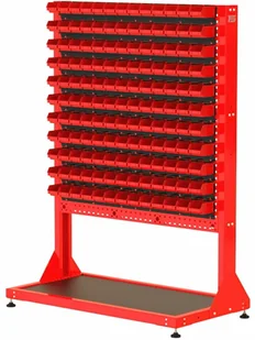 stojak narzędziowy ST 110-13; 11 listew na pojemniki ZW-P1-13; 143 pojemników P1 - solidna konstrukcja stojaka wykonana z blachy o grubości 2,0 mm - stojak jednostronny - kratownica narzędziowa umożliwiająca dowolną konfiguracje zawieszek narzędziowych, bądź listew na pojemniki zależnie od potrzeb - dolna półka wyłożona gumową matą ochronna ogólnego przeznaczenia o grubości 2mm w kolorze czarnym - stojak oparty na stopkach poziomujących - waga stojaka: 71 kg Szerokość 1136mm Głębokość 600mm Wysokość całkowita 1577mm Konstrukcja Wysokiej jakości blacha stalowa gr. 2,0mm Powłoka malarska Malowanie proszkowe Dostępne kolory Możliwość wyboru obok zdjęcia produktu Ochronna mata Tak. Na półce. Perforacja Oczko 10x10mm, odstęp pomiędzy oczkami 32mm. Sposób wysyłki Całkowicie zmontowane.