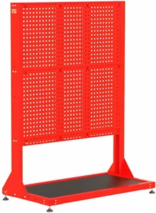 - solidna konstrukcja stojaka wykonana z blachy o grubości 2,0 mm - stojak jednostronny - kratownica narzędziowa umożliwiająca dowolną konfiguracje zawieszek narzędziowych, bądź listew na pojemniki zależnie od potrzeb - szeroki wybór zawieszek na narzędzia bądź pojemniki- perforacja Oczko 10x10mm, odstęp pomiędzy oczkami 32mm - dolna półka wyłożona gumową matą ochronna ogólnego przeznaczenia o grubości 2mm w kolorze czarnym - stojak oparty na stopkach poziomujących -waga stojaka: