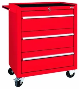 SZAFKA NARZĘDZIOWA-3 SZUFLADY (P-1-05-02) - solidna konstrukcja szafki wykonana z wysokiej jakości blachy stalowej o grubości 1 mm - szuflady na prowadnicach kulkowych umożliwiają całkowite ich wysunięcie oraz zapewniają wieloletnią eksploatację - aluminiowe uchwyty szuflad zapewniają ich komfortowe wysuwanie - blat szafki wyłożony matą gumową benzyno-olejoodporną - blat może służyć jako miejsce robocze - na blacie szafki mogą stać nadstawki: P-1-01-02 lub P-1-02-02 - dna szuflad wyłożone ochronną matą gumową - niklowana rączka wózka - centralny zamek blokujący wszystkie szuflady - dwa kółka stałe i dwa obrotowe ( w tym jedno z hamulcem) o średnicy 100 mm - opona koła wykonana z gumy modyfikowanej, odpornej na oleje, smary i benzynę - oś koła oparta na łożysku kulkowym uszczelnionym osłoną boczną z tworzywa - pokryta lakierem proszkowym w standardowych kolorach: czerwonym (RAL 3020) niebieskim (RAL 5005) możliwość pomalowania w innym kolorze RAL - dokładne wymiary w galerii zdjęć - waga szafki: 52 kg Szerokość 680mm Głębokość 460mm Wysokość całkowita 920mm Konstrukcja Wysokiej jakości blacha stalowa gr. 1mm Rodzaj blatu Wyłożony ochronną matą gumową.
