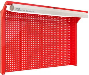 Tablica warsztatowa N-140-01 - konstrukcja nóg tablicy wykonana z wysokiej jakości blachy stalowej o grubości 1,5mm - płyty perforowana wykonane z wysokiej jakości blachy stalowej o grubości 1,0mm - tylna ściana tablicy wykonana z płyty perforowanej umożliwiającej zamontowanie zawieszek systemowych - perforacja tylnej ściany oczko 10x10mm w rozstawie co 32mm - dodatkowe wzmocnienia tylnej perforowanej ściany - tablica przystosowana do montażu bezpośrednio na blacie stołu lub zawieszenia na ścianie - montaż nóg do blatu stołu za pomocą dedykowanych wsporników - nogi tablicy posiadają perforację umożliwiającej zamontowanie zawieszek systemowych - dodatkowe wzmocnienia stabilizujące nogi z płytą perforowaną - wsporniki oświetlenia wykonane z blachy stalowej o grubości 2,0mm - oprawa oświetleniowa LED o parametrach 5000LM PRM IP40 840 (41W) - dodatkowo oprawa wyposażona w odbłyśnik - w belce oświetlenia zainstalowany wyłącznik oświetlenia - przewód zasilający o dł.
