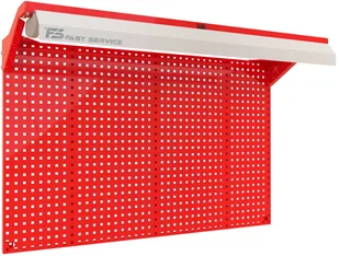 Tablica warsztatowa N-140-04 - płyta wykonana z wysokiej jakości blachy stalowej o grubości 1,0mm - perforacja płyty umożliwiająca zamontowanie zawieszek systemowych - perforacja płyty oczko 10x10mm w rozstawie co 32mm - wsporniki oświetlenia wykonane z blachy stalowej o grubości 2,0mm - oprawa oświetleniowa LED o parametrach 5000LM PRM IP40 840 (41W) - dodatkowo oprawa wyposażona w odbłyśnik - tablica przystosowana do zawieszenia na ścianie - w belce oświetlenia zainstalowany wyłącznik oświetlenia - przewód zasilający o dł.