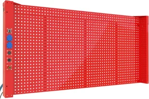 Tablica warsztatowa N-192-02-02 - konstrukcja nóg tablicy wykonana z wysokiej jakości blachy stalowej o grubości 1,5mm - płyta perforowana wykonane z wysokiej jakości blachy stalowej o grubości 1,0mm - tylna ściana tablicy wykonana z płyty perforowanej umożliwiającej zamontowanie zawieszek systemowych - perforacja tylnej ściany oczko 10x10mm w rozstawie co 32mm - dodatkowe wzmocnienia tylnej perforowanej ściany - tablica przystosowana do montażu bezpośrednio na blacie stołu lub zawieszenia na ścianie - montaż nóg do blatu stołu za pomocą dedykowanych wsporników - nogi tablicy posiadają perforację umożliwiającej zamontowanie zawieszek systemowych - dodatkowe wzmocnienia stabilizujące nogi z płytą perforowaną - przewód zasilający o dł.