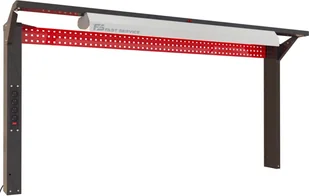 Tablica warsztatowa N-196-03-01 - konstrukcja nóg tablicy wykonana z wysokiej jakości blachy stalowej o grubości 1,5mm - górna płyta wykonana z wysokiej jakości blachy stalowej o grubości 1,0mm - perforacja górnej płyty umożliwiająca zamontowanie zawieszek systemowych - perforacja płyty oczko 10x10mm w rozstawie co 32mm - montaż nóg do blatu stołu za pomocą dedykowanych wsporników - nogi tablicy posiadają perforację umożliwiającej zamontowanie zawieszek systemowych - dodatkowe wzmocnienia stabilizujące nogi z płytą perforowaną - wsporniki oświetlenia wykonane z blachy stalowej o grubości 2,0mm - oprawa oświetleniowa LED o parametrach 5000LM PRM IP40 840 (41W) - dodatkowo oprawa wyposażona w odbłyśnik - w belce oświetlenia zainstalowany wyłącznik oświetlenia - przewód zasilający o dł.