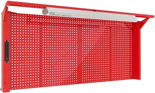 Tablica warsztatowa N-207-01-01 - konstrukcja nóg tablicy wykonana z wysokiej jakości blachy stalowej o grubości 1,5mm - płyta perforowana wykonane z wysokiej jakości blachy stalowej o grubości 1,0mm - tylna ściana tablicy wykonana z płyty perforowanej umożliwiającej zamontowanie zawieszek systemowych - perforacja tylnej ściany oczko 10x10mm w rozstawie co 32mm - dodatkowe wzmocnienia tylnej perforowanej ściany - tablica przystosowana do montażu bezpośrednio na blacie stołu lub zawieszenia na ścianie - montaż nóg do blatu stołu za pomocą dedykowanych wsporników - nogi tablicy posiadają perforację umożliwiającej zamontowanie zawieszek systemowych - dodatkowe wzmocnienia stabilizujące nogi z płytą perforowaną - wsporniki oświetlenia wykonane z blachy stalowej o grubości 2,0mm - oprawa oświetleniowa LED o parametrach 5000LM PRM IP40 840 (41W) - dodatkowo oprawa wyposażona w odbłyśnik - w belce oświetlenia zainstalowany wyłącznik oświetlenia - przewód zasilający o dł.