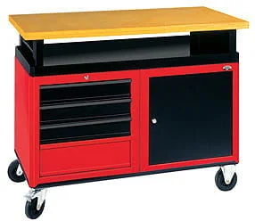 - konstrukcja wózka wykonana z blachy stalowej o grubości 1 mm - blat roboczy o grubości 36 mm - koła 2 stałe i 2 obrotowe (w tym 1 z hamulcem) o średnicy 125 mm - pokryty lakierem proszkowym w kolorze: