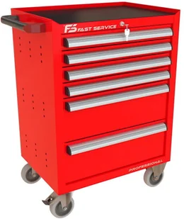 Wózek warsztatowy z 6 szufladami P-217 6 szuflad na stalowych teleskopowych prowadnicach kulkowych z pełnym wysuwem wysuw szuflad 97 % odciążenie statyczne jednej szuflady do 60 kg centralna blokada zamykająca wszystkie szuflady po przekręceniu kluczyka centralny zamek blokujący z dwoma kluczami w komplecie w systemie Master Key dno każdej szuflady wyłożone gumową matą tłumiącą ogólnego przeznaczenia o grubości 2,0 mm blat wózka wyłożony tłumiącą matą gumową benzyno olejo odporną o grubości 2,0 mm przykręcany aluminiowy, anodowany i satynowany uchwyt szuflady z zabezpieczeniem bocznych krawędzi wkładką z tworzywa konstrukcja szafki wykonana z blachy stalowej o grubości 1 mm wzmocnienia podstawy kół wykonane z blachy stalowej o grubości 2,0 mm 4 koła o średnicy 125 mm Colson Performa 2 stałe + dwa obrotowe w tym jedno z hamulcem opona koła wykonana z niebrudzącej syntetycznej gumy szarej, odpornej na smary benzyny ługi boki szafki posiadają perforację przystosowaną do zamontowania zawieszek na narzędzia produkt wyposażony w solidny boczy uchwyt pomocny przy manewrowaniu obciążonym wózkiem możliwość pomalowania w dowolnym podstawowym kolorze palety RAL (w cenie) Wymiary użytkowe szuflad: 4 x szuflada niska 70 wysokość czoła szuflady 66 mm wysokość wewnętrzna użytkowa 56 mm szerokość wewnętrzna użytkowa 558 mm głębokość wewnętrzna użytkowa 408 mm 2 x szuflada wysoka 210 wysokość czoła szuflady 206 mm wysokość wewnętrzna użytkowa 197 mm szerokość wewnętrzna użytkowa 558 mm głębokość wewnętrzna użytkowa 408 mm dokładne wymiary w galerii zdjęć Waga wózka 66 kg Wyposażenie opcjonalne (dodatkowo płatne): blokada zapobiegająca wysunięciu więcej niż jednej szuflady blat wózka wykonany ze sklejki o gr. 40 mm przestawne podziałki / p