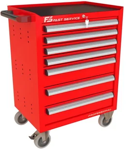 Wózek warsztatowy z 7 szufladami P-213 7 szuflad na stalowych teleskopowych prowadnicach kulkowych z pełnym wysuwem wysuw szuflad 97 % odciążenie statyczne jednej szuflady do 60 kg centralna blokada zamykająca wszystkie szuflady po przekręceniu kluczyka centralny zamek blokujący z dwoma kluczami w komplecie w systemie Master Key dno każdej szuflady wyłożone gumową matą tłumiącą ogólnego przeznaczenia o grubości 2,0 mm blat wózka wyłożony tłumiącą matą gumową benzyno olejo odporną o grubości 2,0 mm przykręcany aluminiowy, anodowany i satynowany uchwyt szuflady z zabezpieczeniem bocznych krawędzi wkładką z tworzywa konstrukcja szafki wykonana z blachy stalowej o grubości 1 mm wzmocnienia podstawy kół wykonane z blachy stalowej o grubości 2,0 mm 4 koła o średnicy 125 mm Colson Performa 2 stałe + dwa obrotowe w tym jedno z hamulcem opona koła wykonana z niebrudzącej syntetycznej gumy szarej, odpornej na smary benzyny ługi boki szafki posiadają perforację przystosowaną do zamontowania zawieszek na narzędzia produkt wyposażony w solidny boczy uchwyt pomocny przy manewrowaniu obciążonym wózkiem możliwość pomalowania w dowolnym podstawowym kolorze palety RAL (w cenie) Wymiary użytkowe szuflad: 4 x szuflada niska 70 wysokość czoła szuflady 66 mm wysokość wewnętrzna użytkowa 56 mm szerokość wewnętrzna użytkowa 558 mm głębokość wewnętrzna użytkowa 408 mm 3 x szuflada średnia 140 wysokość czoła szuflady 136 mm wysokość wewnętrzna użytkowa 119 mm szerokość wewnętrzna użytkowa 558 mm głębokość wewnętrzna użytkowa 408 mm dokładne wymiary w galerii zdjęć Waga wózka 71 kg Wyposażenie opcjonalne (dodatkowo płatne): blokada zapobiegająca wysunięciu więcej niż jednej szuflady blat wózka wykonany ze sklejki o gr. 40 mm przestawne podziałki / p