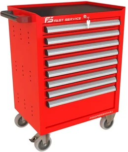 Wózek warsztatowy z 8 szufladami P-216 8 szuflad na stalowych teleskopowych prowadnicach kulkowych z pełnym wysuwem wysuw szuflad 97 % odciążenie statyczne jednej szuflady do 60 kg centralna blokada zamykająca wszystkie szuflady po przekręceniu kluczyka centralny zamek blokujący z dwoma kluczami w komplecie w systemie Master Key dno każdej szuflady wyłożone gumową matą tłumiącą ogólnego przeznaczenia o grubości 2,0 mm blat wózka wyłożony tłumiącą matą gumową benzyno olejo odporną o grubości 2,0 mm przykręcany aluminiowy, anodowany i satynowany uchwyt szuflady z zabezpieczeniem bocznych krawędzi wkładką z tworzywa konstrukcja szafki wykonana z blachy stalowej o grubości 1 mm wzmocnienia podstawy kół wykonane z blachy stalowej o grubości 2,0 mm 4 koła o średnicy 125 mm Colson Performa 2 stałe + dwa obrotowe w tym jedno z hamulcem opona koła wykonana z niebrudzącej syntetycznej gumy szarej, odpornej na smary benzyny ługi boki szafki posiadają perforację przystosowaną do zamontowania zawieszek na narzędzia produkt wyposażony w solidny boczy uchwyt pomocny przy manewrowaniu obciążonym wózkiem możliwość pomalowania w dowolnym podstawowym kolorze palety RAL (w cenie) Wymiary użytkowe szuflad: 7 x szuflada niska 70 wysokość czoła szuflady 66 mm wysokość wewnętrzna użytkowa 56 mm szerokość wewnętrzna użytkowa 558 mm głębokość wewnętrzna użytkowa 408 mm 1 x szuflada wysoka 210 wysokość czoła szuflady 206 mm wysokość wewnętrzna użytkowa 197 mm szerokość wewnętrzna użytkowa 558 mm głębokość wewnętrzna użytkowa 408 mm dokładne wymiary w galerii zdjęć Waga wózka 76 kg Wyposażenie opcjonalne (dodatkowo płatne): blokada zapobiegająca wysunięciu więcej niż jednej szuflady blat wózka wykonany ze sklejki o gr. 40 mm przestawne podziałki / p